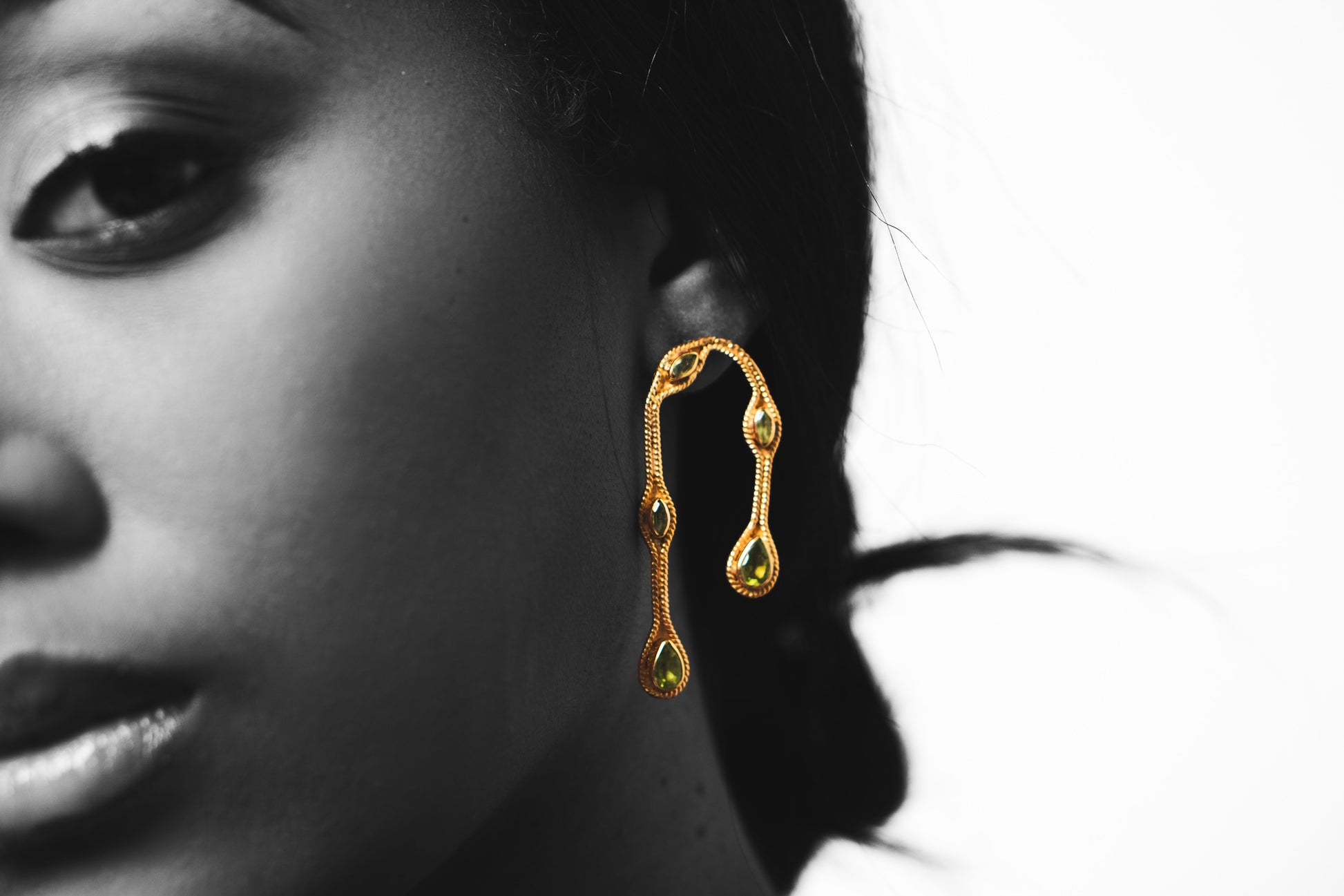 This signature earring showcases a beautifully braided rope design. Each earring is accented with a pear-shaped, bezel-set peridot stone, adding a touch of vibrant elegance. Available in 925 sterling silver or gold-finished sterling silver.
